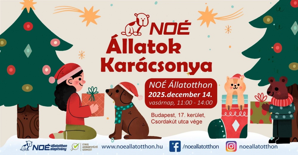 🎄 Idén is megrendezzük a már hagyományos NOÉs Állatok Karácsonyát❗️ ✨ 2025. december 14. vasárnap 🐾 NOÉ Állatotthon 🏠 1171 Budapest, Csordakút utca vége 🕙 - 🕑 11:00 és 14:00 óra között várjuk a látogatóinkat