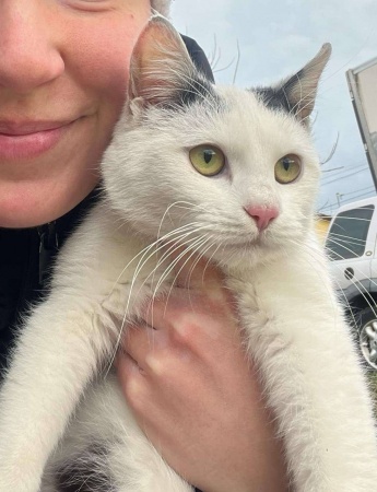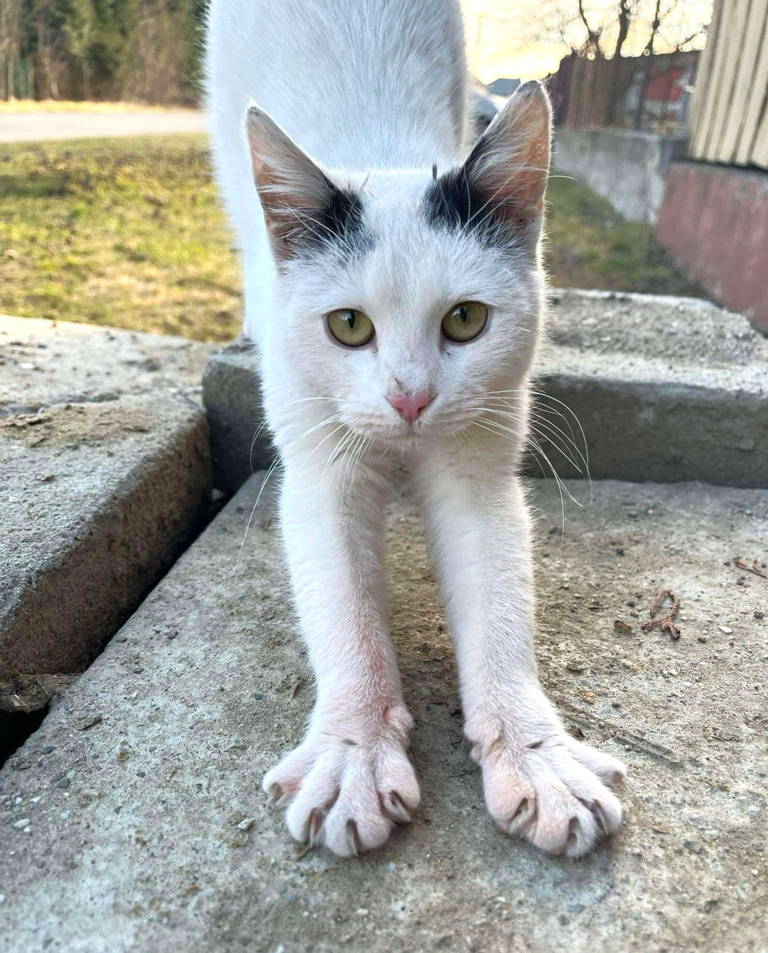 Bombi egy tündéri fehér szeretetgombóc, aki nem túl pici, és nem túl nagy: pont tökéletes méretű cicánk.