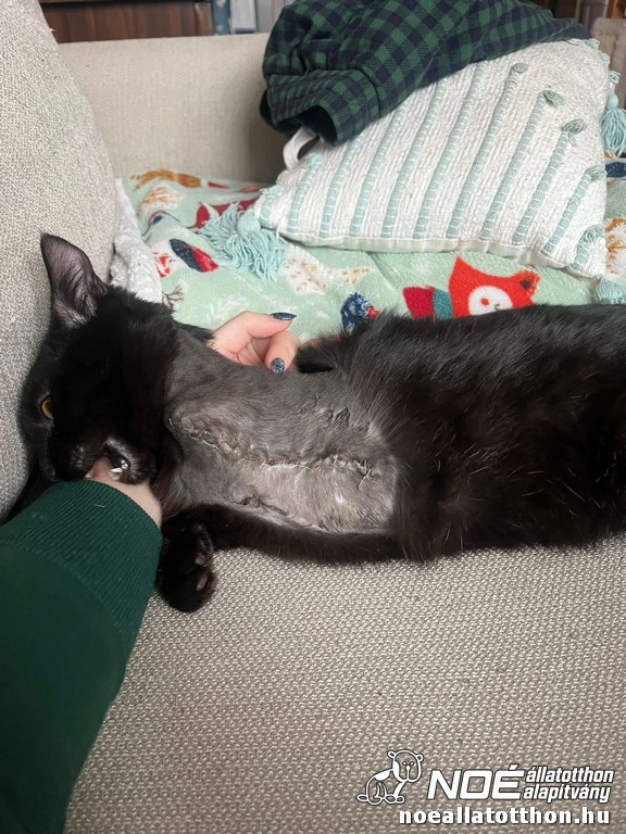 A műtét sikeresen lezajlott, és a cica már ismét jön-megy, teljesértékű életet él.