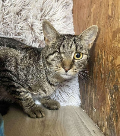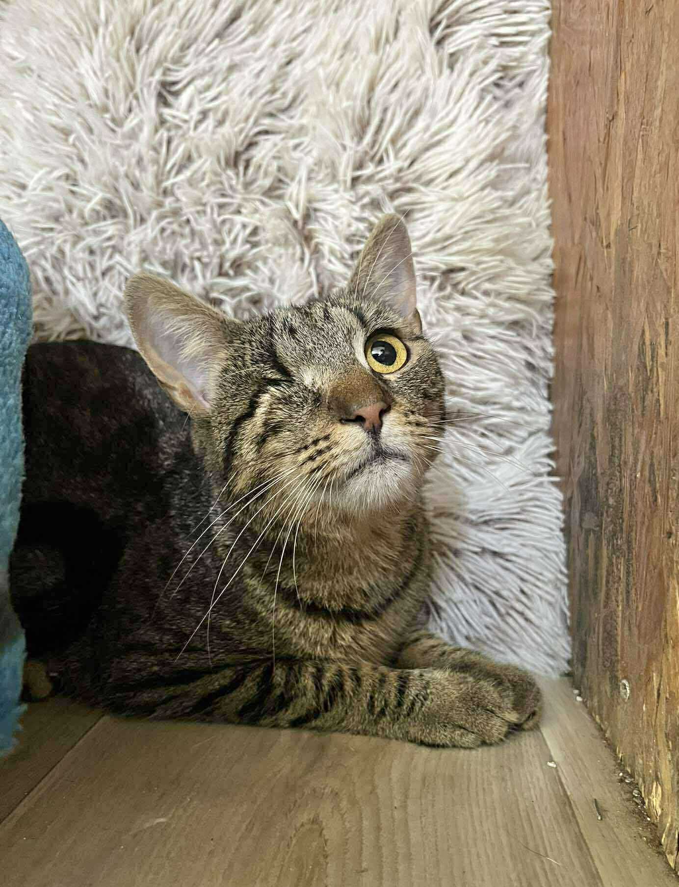 Siente jobb szeme hiányzik, de ez nem akadályozza őt semmiben, teljes értékű életet él – gyönyörű, ugribugri cirmos cica.