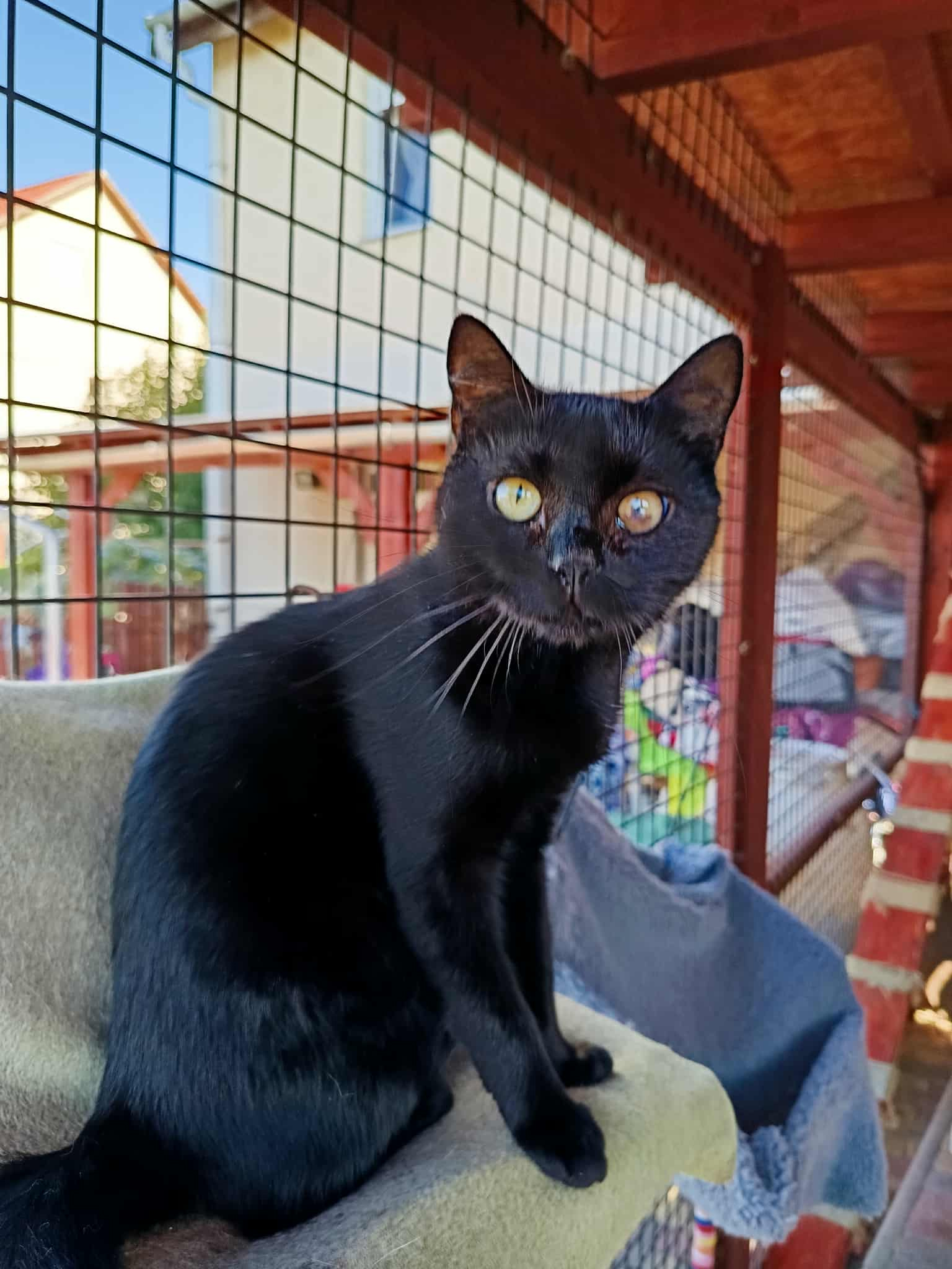 Yurij bal szemén egy kis heg van, de ez nem akadályozza őt semmiben, teljes értékű életet él – gyönyörű, ugribugri fekete cica.