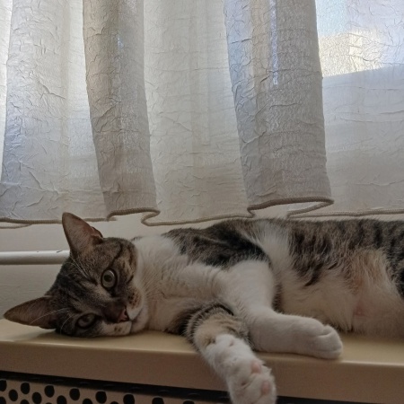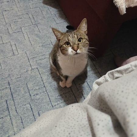 Név: Nógrád megyei cicaGazdája betegség miatt sajnos új otthont kell találnia ennek a fehér-cirmos cicának.