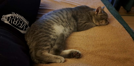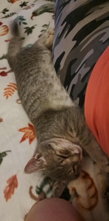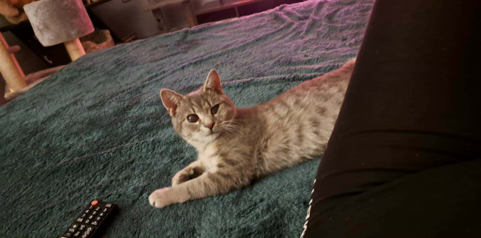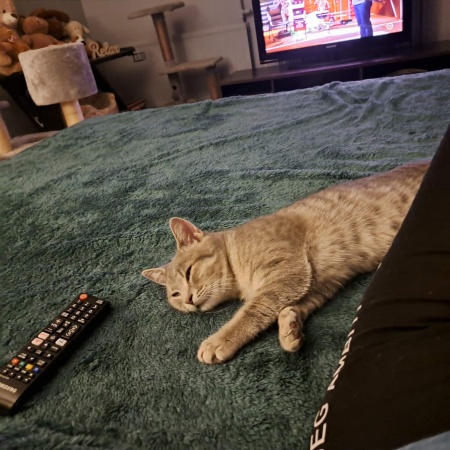 Megtalálójának köszönhetően már egészségesen és jól szocializáltan érkezett hozzánk. Marcipán gyönyörű, hamvas szürke színű, pihe-puha bundájú, ivartalanított kandúr. Jó étvágyú, egyáltalán nem válogatós, különösen nagy kedvence a cicaleves. Szívesen mászik fel cicabútorokra, a körmeit pedig rendeltetésszerűen a kaparófán koptatja. Kifejezetten embercentrikus: előszeretettel fekszik az ember mellé, teljesen felveszi annak alakját, és amikor elégedett, a dorombolása olyan hangos, mint egy traktor motorja 🚜😄