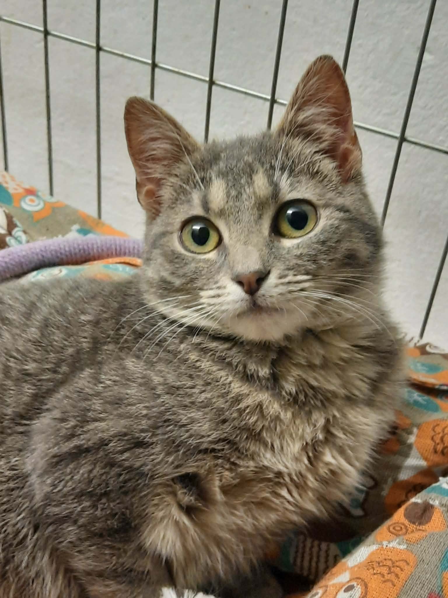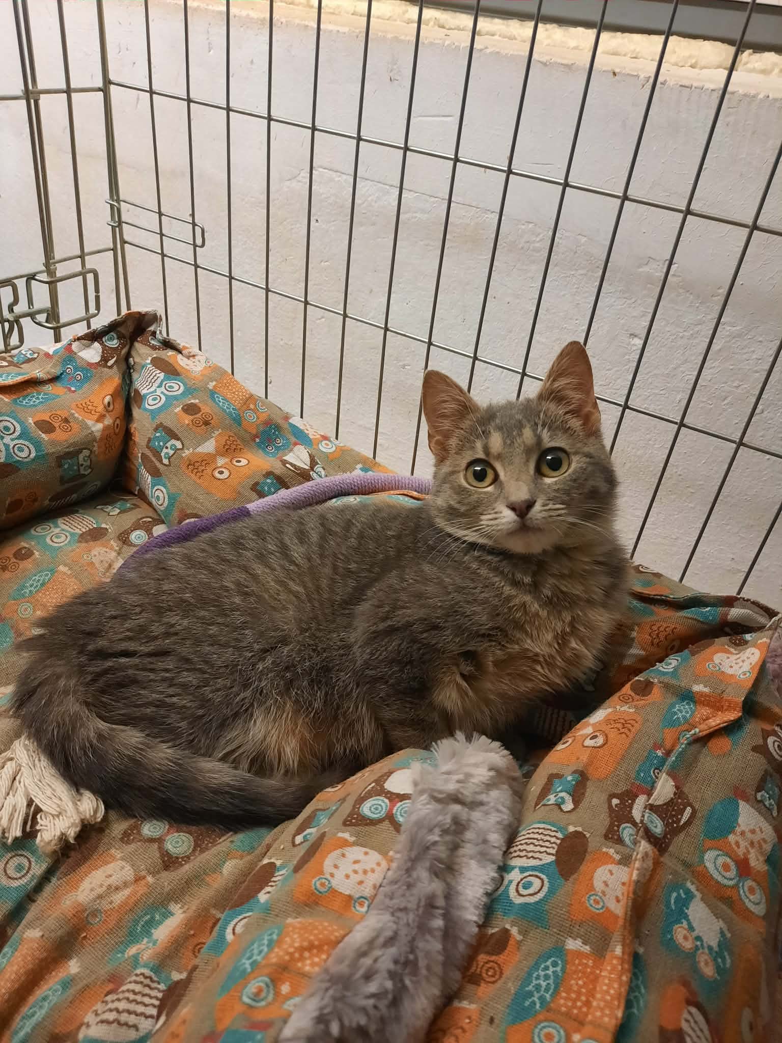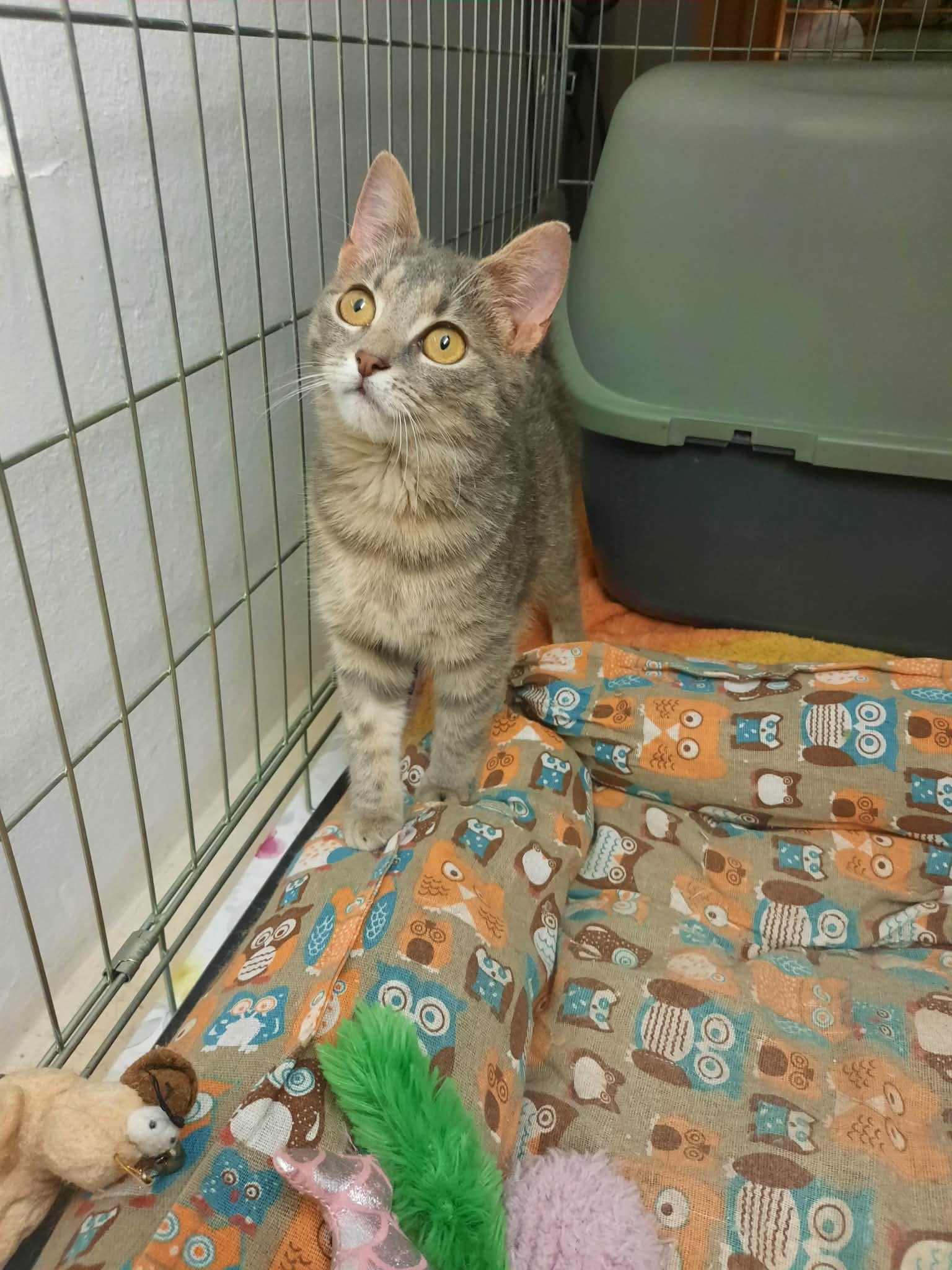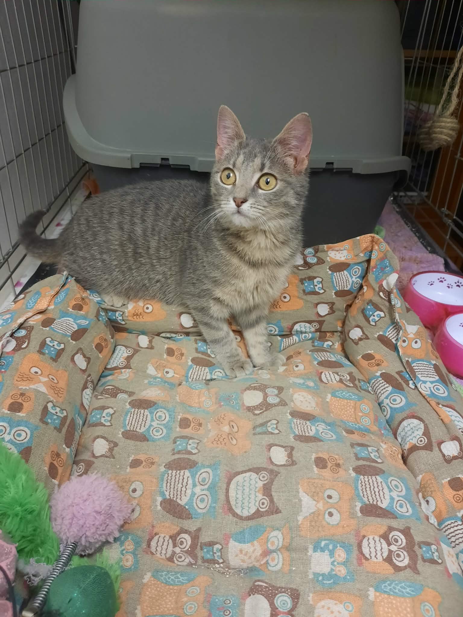 4.5 hónapos kiegyensúlyozott kislány, akinek már rég nem a kennelben lenne a helye és aki már attól is boldog ha felveheti valakivel a szemkontaktust, érintésre pedig dorombol.