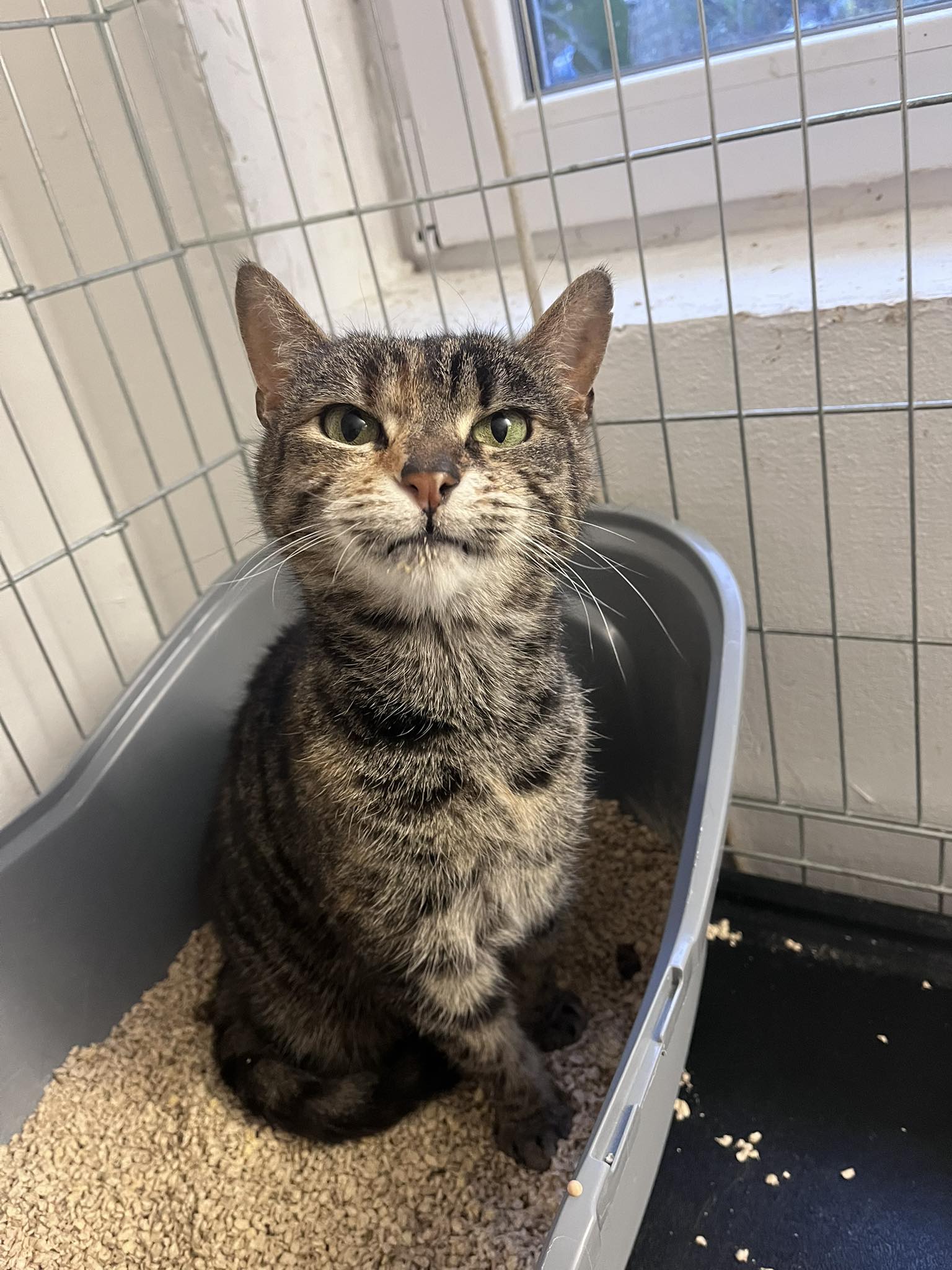 Most rehabilitációs részlegünkön önkénteseink elhalmozzák őt figyelmükkel, és reméljük hogy hamarosan ismét boldog cica lesz.