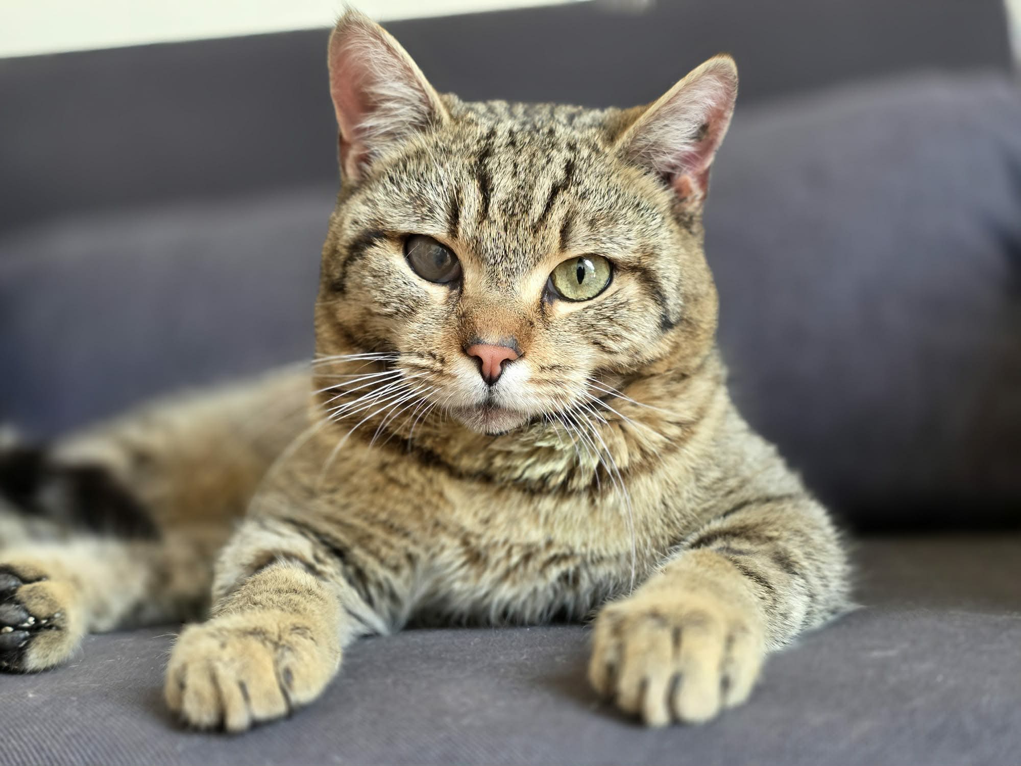 Főnix hatalmas, erős kötésű, gyönyörű cica vaskos farokkal, ami felveti az esélyét, hogy felmenői között vadmacskák is lehettek.