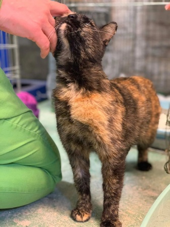 Pinky cica szervezeti átvétellel került védelmünkbe, miután a Bundás Barát Egyesület megmentette őt Gyálon, ahol kóbor cicaként kunyerált élelmet és simit.