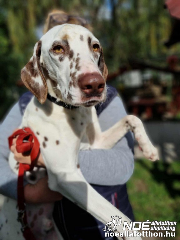 Flurry egy nagyon kedves, kb 2023. születésű, fehér barna foltos dalmata kanocska.
