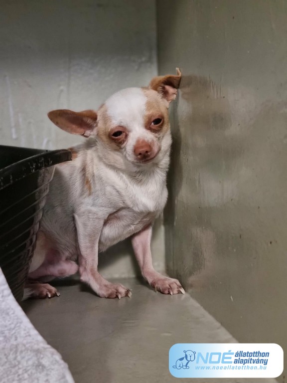 Szaporítótól hoztuk el egy olyan helyről ahol a kutyák sárban, fagyban, saját ürülékük között éltek. Oltás nélkül, chip nélkül, csontsoványan, tele bolhával, hosszú, ápolatlan körmökkel. Nehéz szavakba önteni, micsoda körülmények közül sikerült kimenteni.