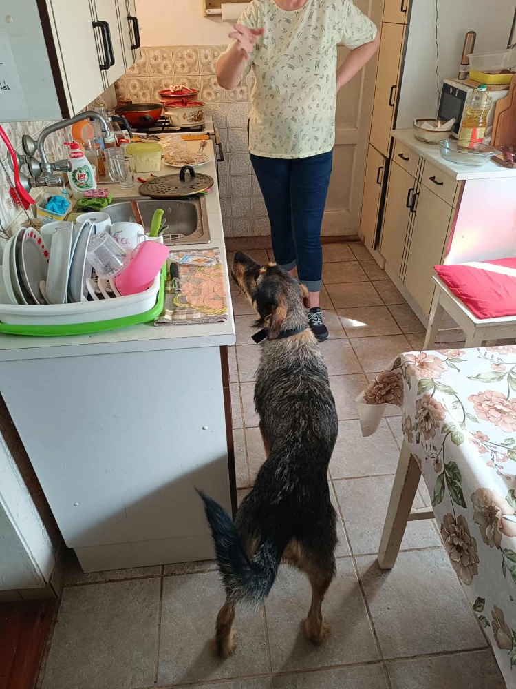 "Szia Piroska! Köszönjük Lujzit! 🥰 Ismerkedik a kerttel, velünk és úgy vesszük észre, hogy egészen otthonosan viselkedik. Csináltam néhány képet, csatolom 😁 Jutka U.i. : A kedvenc hely a konyha 😁"