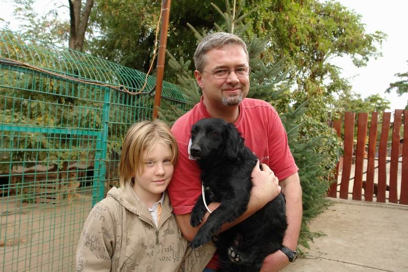 Szeretnék Almáról (most már Ropinak hívjuk) képeket küldeni nektek. Péntek délután vittük haza, aznap és másnap északára még kiláncoltuk, nehogy elmenjen, de vasárnaptól kezdődően már "csak" akkor kötjük meg, amikor a kocsival kiállunk az udvarból. Amikor a nap kezd lemenni, Ő bevonul a házába és lefekszik aludni. Nappal sem tűnik szökősnek, megy pár kört az udvarban, majd pihen egyet. Amikor viszont meghallja az autót (úgy tűnik már megismeri) vagy a hangunkat, nagyon megörül, hogy végre valaki itthon van. Ha bármikor elindulunk a kapu felé, azonnal ugrik és elkísér minket (még ha kaja közben van, akkor is). Sétálni még nem mertük kivinne, ma este lesz az első alkalom. Nagyon jó fej kutyus, nagyon megkedveltük. Péntek délutántól fogva a gondolatai leginkább a labdája és a kis gazdája körül forognak. Sajnos a felugrálásról nem igazán akar leszokni, de előbb-utóbb reméljük rájön, hogy a nélkül még inkább szeretjük. A lakásba nem jön be, de azért próbálkozik a kis tappancsait be rakni az ajtón és ha már bent van, akkor egyre beljebb pakolni. Házőrzés szempontjából még nem sok jót tudok mondani, hisz bárki jön, mindenkit beenged (bár ha jön valaki, akkor velünk jön be az udvarra). A macskákat zavarja, és mikor tegnap egy kóbor kutyusnak próbáltam kedvesen szólni, akkor őt is csúnyán megugatta.
