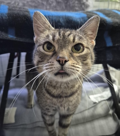 A gyömrői felszámolás alatt álló menhelyről a Noé gondozásába a 17 kutyán kívül, 7 cica is került. Köztük volt Csuszka is, aki rettegve, nagyon betegen került be, valószínűleg számára az utolsó pillanatban érkezett a segítség. Ő volt testileg és lelkileg is a legrosszabb állapotban, de mostanra ez megfordult: ő a legkedvesebb cirmos cica!