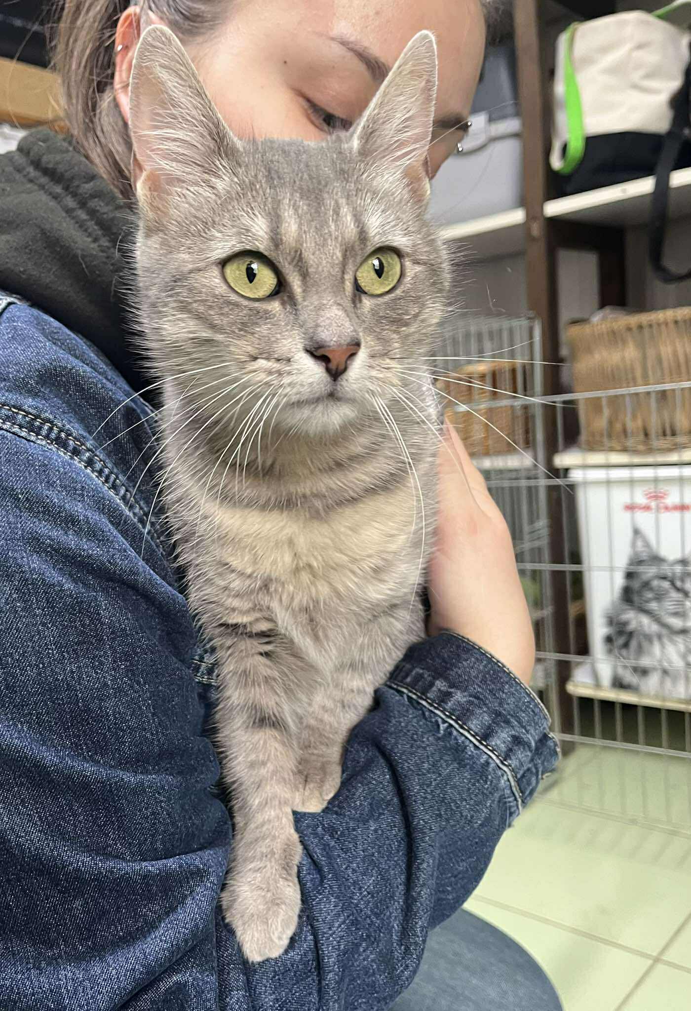 Moon egy elbűvölően szép, hamvas színű, puha bundájú kislánycica.