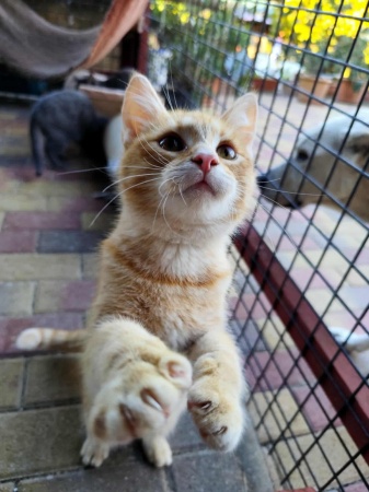 Név: LeonkaLeonka idén nyáron a városi kórház egyik kiselejtezett virag ládájában látta meg a napvilágot 2 tesójával.