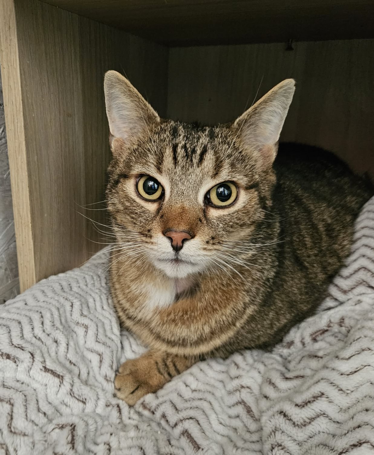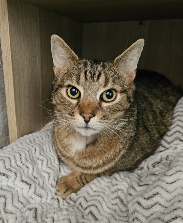 Csendes, alacsonyabb energiaszintű cicánk, akit közeli kapocs fűz barátjához, Halk Hédihez, akivel nagyon szeretnének együtt gazdisodni.