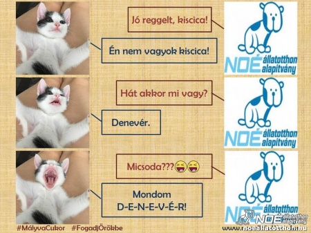 Érdeklődni a macskamentes@noeallatotthon.hu címünkön lehet!Ő KockaCukor - a tiszta lábúIgazi sármőr, dorombolós, kíváncsi pasi(ka). És ami a legfontosabb: biztos lehetsz benne, hogy nem büdös a lába… ugyanis napi 5-8-szor lábat mos a vizestálkában. Irtó cuki 😀, megzabálni való.
