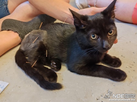 Vencel túl van a műtéten és igenis élni akar. Akupunktúrás kezelésekre jár és napról napra ügyesebben használja a lábacskáit. Igyekszik kiemelni magát, a kezeléseken pedig kis segítséggel (azért még meg kell tartani a hátsóját, de érezhetően azt is kevésbé) oson vissza idegilenes befogadója ölébe. Játszik, ismerkedik, dorombol, dagaszt, igazi macska. Mit számít az a pár hét, amit ketrecben kell töltenie a gyógyulása érdekében, ha utána tizenévig rohangálhat, műegeret kergethet, ugrálhat, bolondozhat.