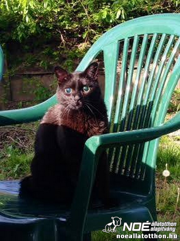 BORÓKARég mutattam képet Borókáról (a vak cicámról a NOÉról). A kép csalóka, mert teleszívta magát levegővel, azért ilyen lufiforma. Egyébként Fókihoz hasonlóan, fogyatékossága ellenére ő is teljes életet él. A telken kimehet a kiskertbe (szuperbiztos!) szaglászni, a természetben lenni. A természet élvezetét mi sem bizonyítja jobban, mint hogy üldögél a kerti műanyag székben.
