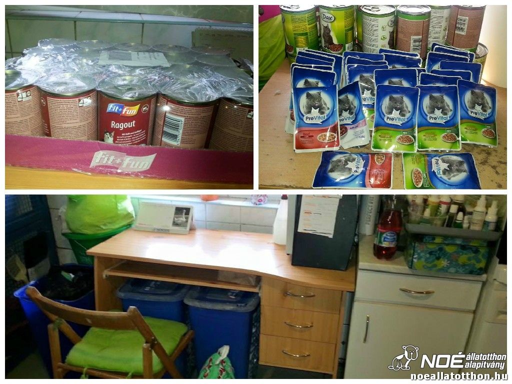 Végül, de nem utolsósorban szeretnénk megköszönni az adományokat, ezzel kerül fel a pont az í-re, vagyis a ti segítségetekkel tudunk mi is hatékonyan segíteni. Ebben a hónapban Ausztriából és Angliából is kaptunk mindenféle földi jót. Közel 800 kg ARION állateledel érkezett adományként a NOÉ Állatotthon Alapítvány gondozásában álló közel 600 kutya és macska lakójához, a táp magyarországi forgalmazójától, az Innoreál Kft-től. A macskamentés új íróasztalt is kapott, amit már használatba is vettünk.